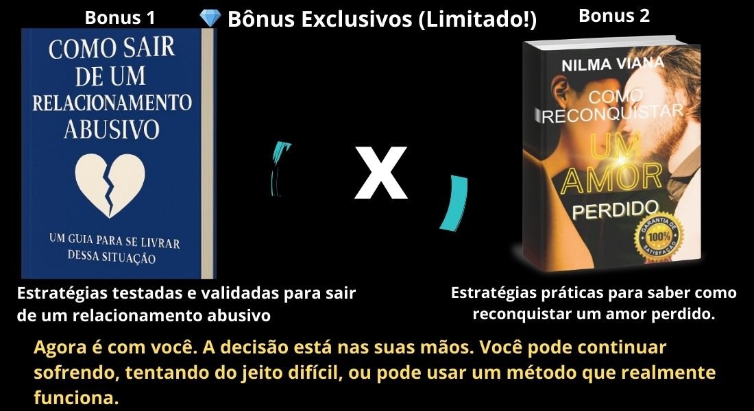 Por menos de R$ 0,25 por dia, parcelado em 4x, você vai levar um guia Como ser feliz no casamento + 2 bônus que vão ajudar você a reconquistar o seu ex de volta.